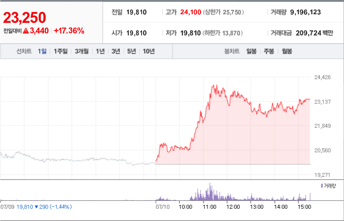 현재가: 23,250, 어제대비:+상승