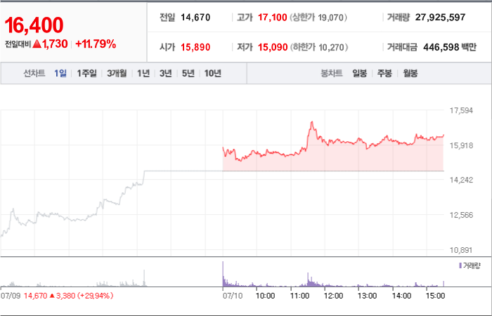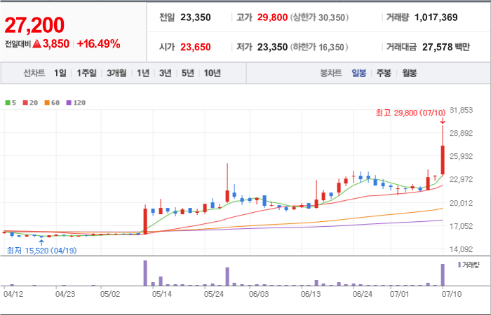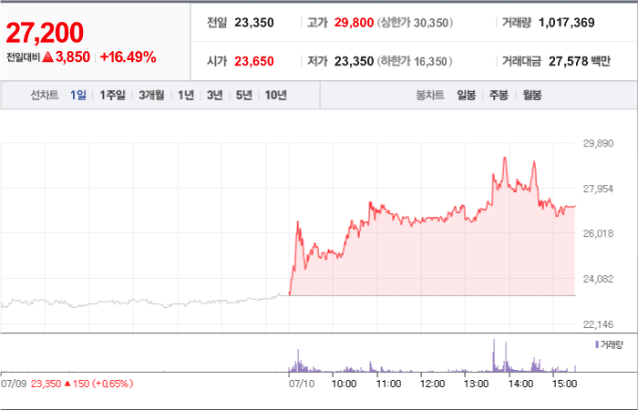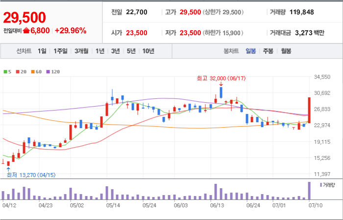 현재가: 29,500, 어제대비:+상한가