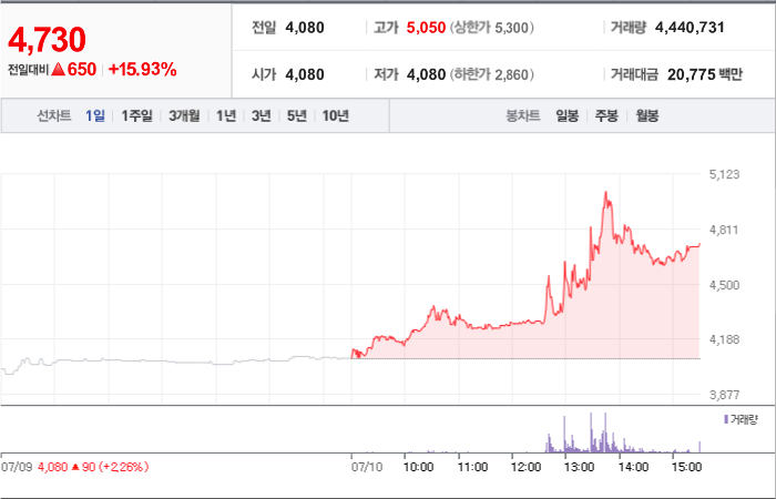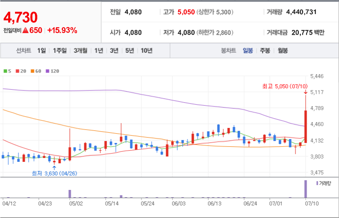 650시총: 553억원, 거래량:4,440,731, 거래대금:20,775백만