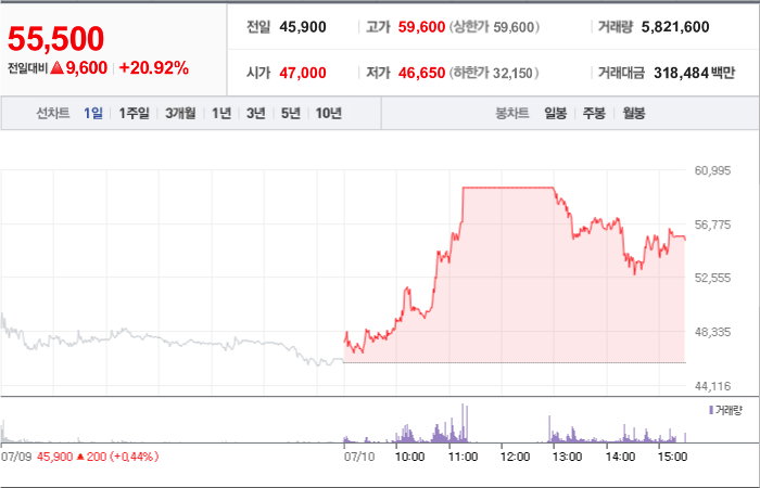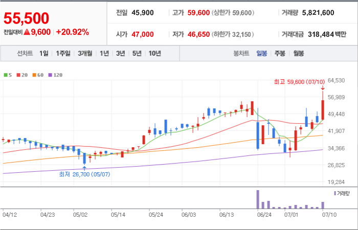 현재가: 55,500, 어제대비:+상승