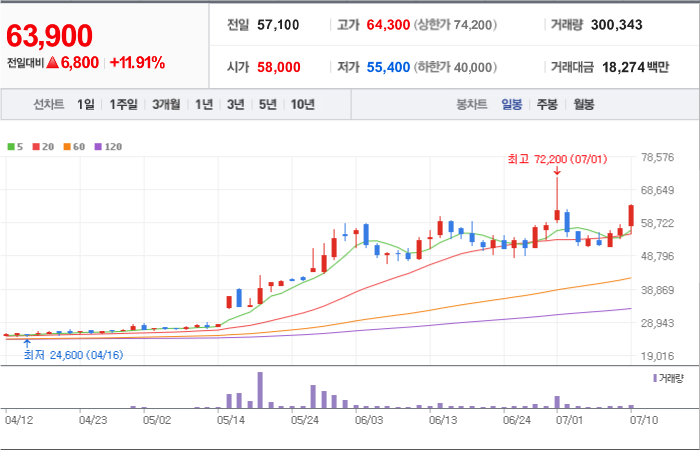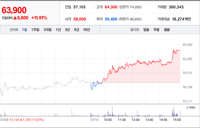 현재가: 63,900, 어제대비:+상승