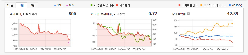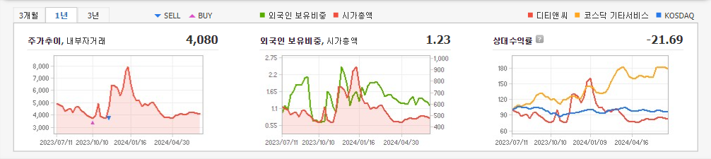 2024년 3월 전년동기 대비 별도기준 매출액은 74.7% 감소, 영업손실은 3.8% 증가, 당기순손실은 16.6% 증가. 매출원가가 감소하였으나 매출액이 급격하게 감소하였고, 인건비 및 복리후생비가 대폭 증가하면서 영업손실이 소폭 확대됨. 최근 지상파 TV, 라디오, 신문, 잡지 등 4대 매체에 의한 광고시장은 정체를 나타내고 있는 반면, 온라인동영상 및 플랫폼을 활용한 광고는 증가하고 있음.