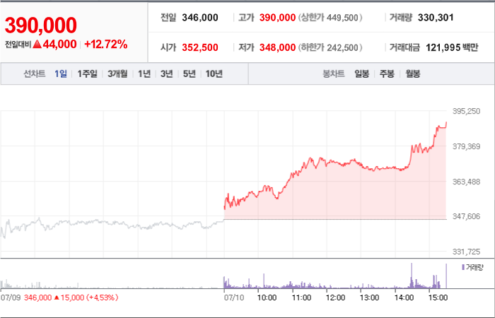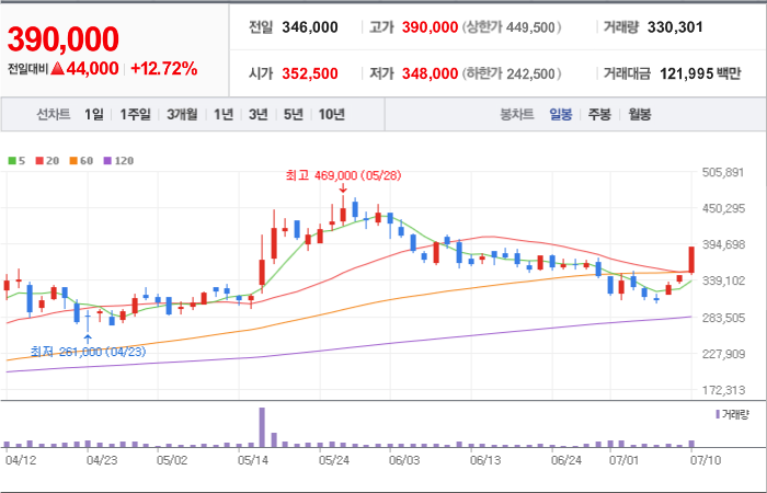 현재가: 390,000, 어제대비:+상승