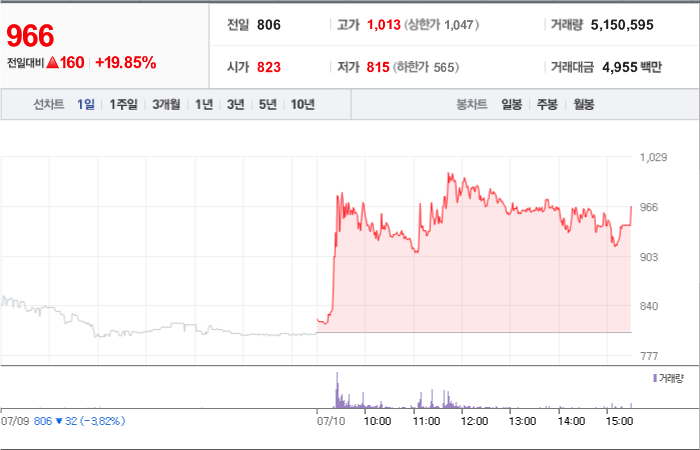 현재가: 954, 어제대비:+상한가