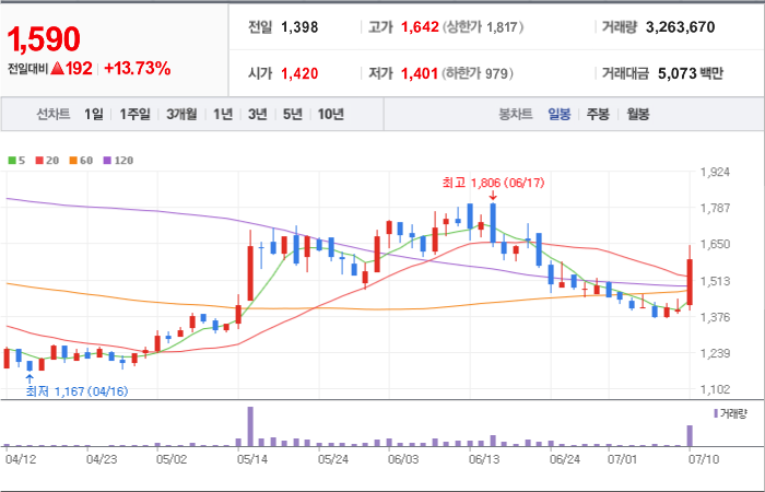 현재가: 1,590, 어제대비:+상승