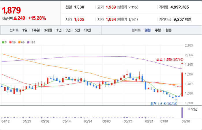 현재가: 1,879, 어제대비:+상승