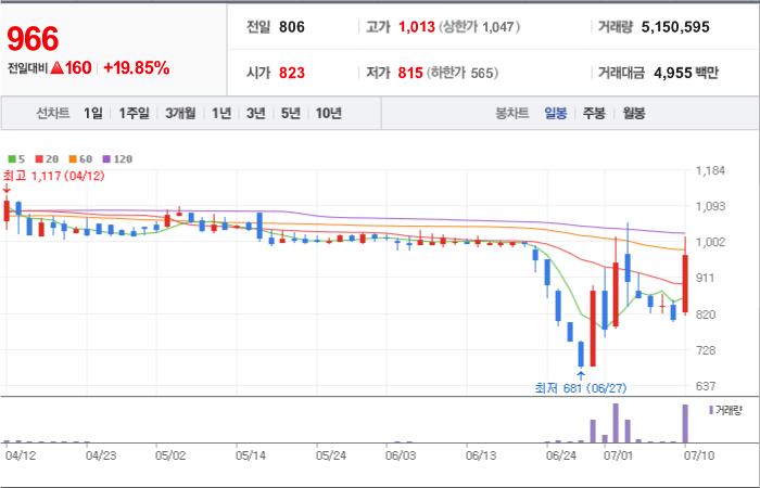 현재가: 966, 어제대비:+상승