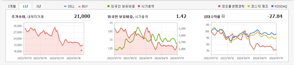 2024년 3월 전년동기 대비 연결기준 매출액은 15.8% 감소, 영업손실은 114.3% 증가, 당기순손실은 255.1% 증가. 동사는 ODM 부문의 매출은 전년동기 대비 증가하였지만 자사브랜드, 건강기능식품 등 매출은 감소하였으며 원가율 하락과 판관비 감소에도 인건비가 증가하여 손실폭이 확대되었음. 백신 원료에 대한 기술확보 (L/I), 글로벌 파트너링을 통해 원료 확보의 어려움을 극복하고 본격적인 개발을 진행하고 있음.