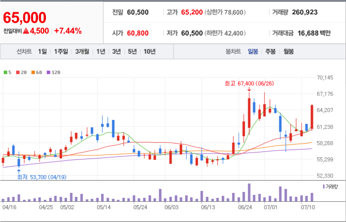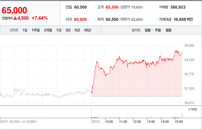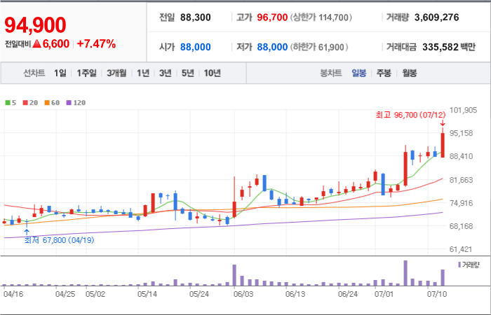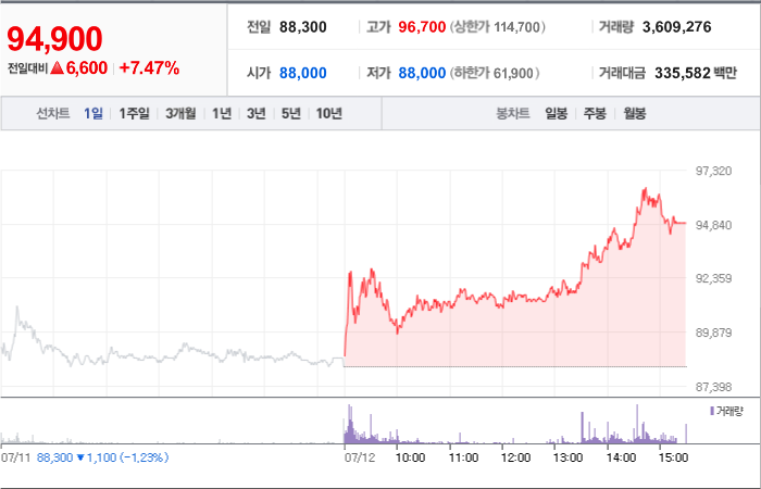 6,600시총: 7조 6,118억원, 거래량:3,609,276, 거래대금:335,582백만