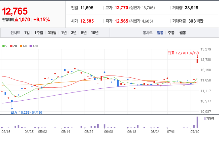 1,070시총: 128억원, 거래량:23,918, 거래대금:303백만