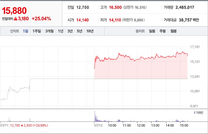 3,180시총: 1,376억원, 거래량:2,485,017, 거래대금:38,757백만