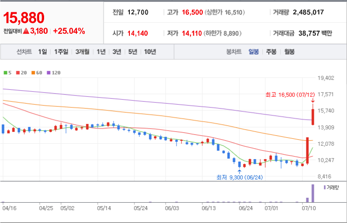 현재가: 15,880, 어제대비:+상승