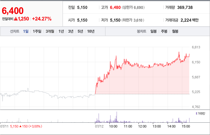 현재가: 6,400, 어제대비:+상승