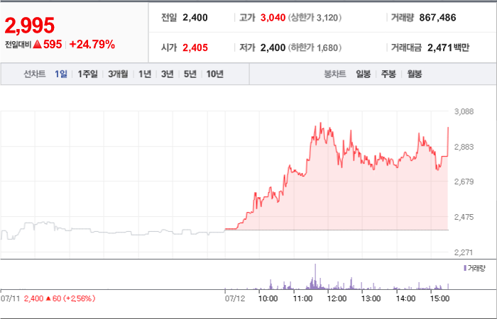 현재가: 2,995, 어제대비:+상승
