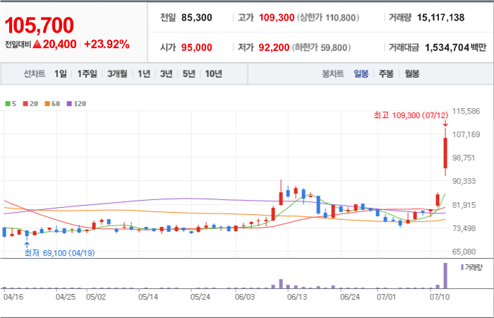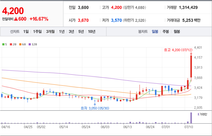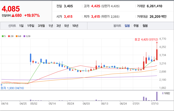 4,000시총: 1조 9,355억원, 거래량:3,010,170, 거래대금:109,095백만