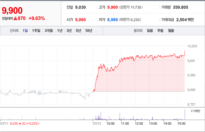 현재가: 9,900, 어제대비:+상승