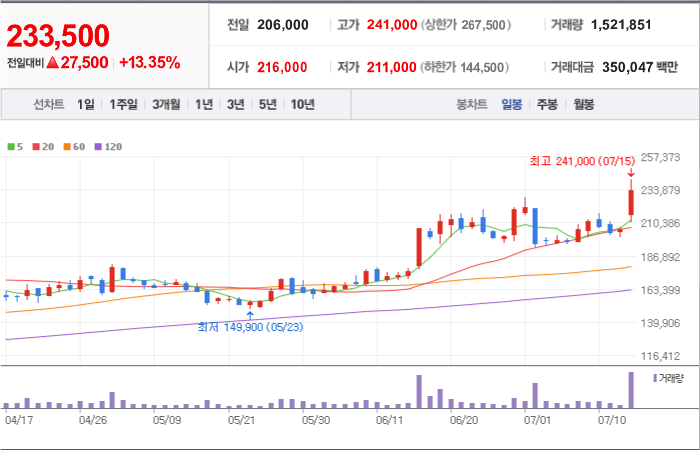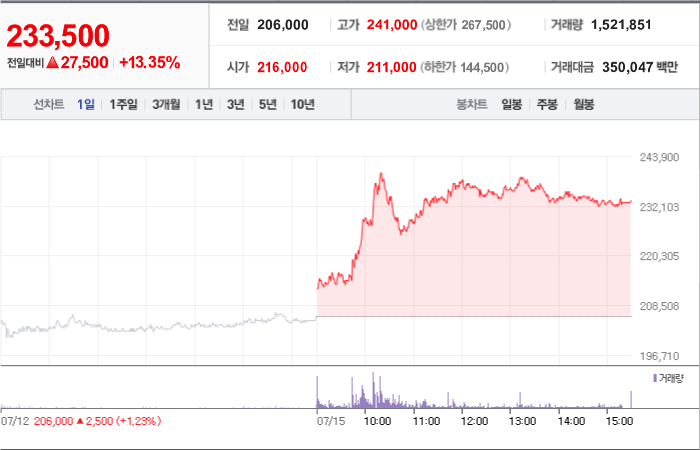 현재가: 233,500, 어제대비:+상승
