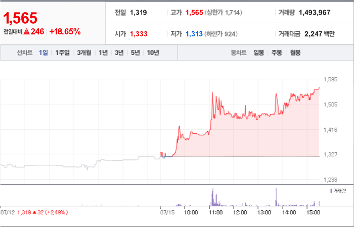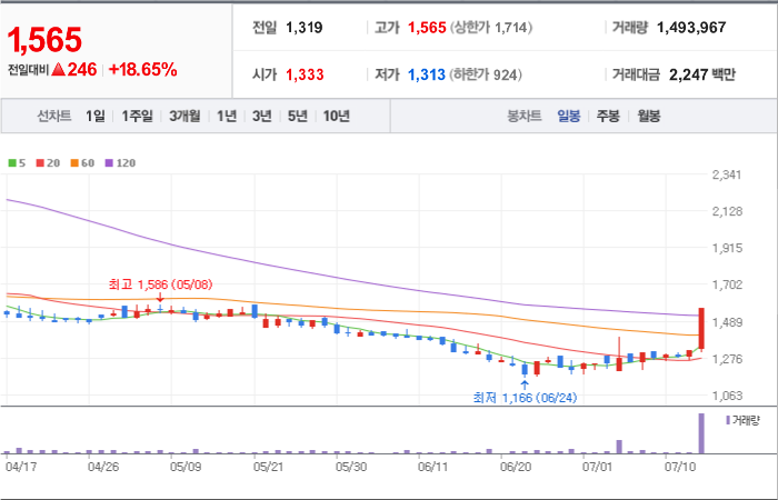 현재가: 1,565, 어제대비:+상승