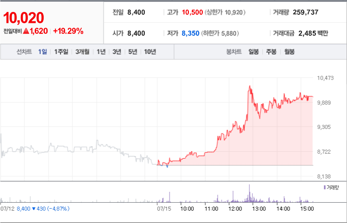 현재가: 10,020, 어제대비:+상승