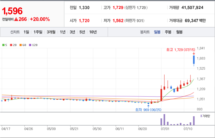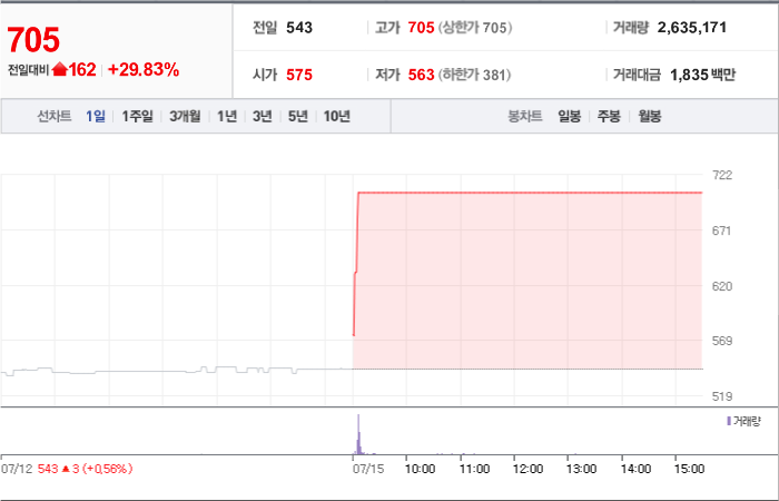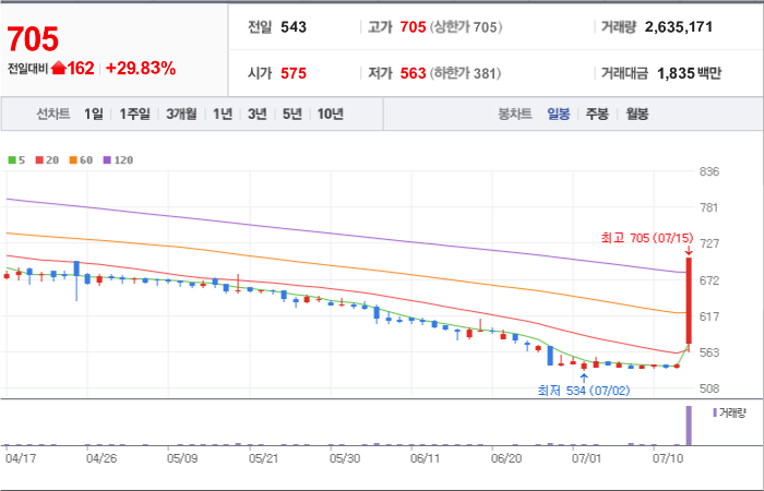 현재가: 705, 어제대비:+상한가