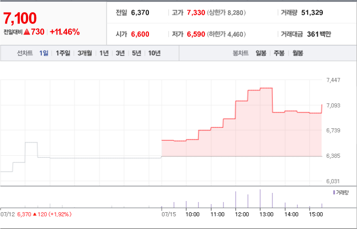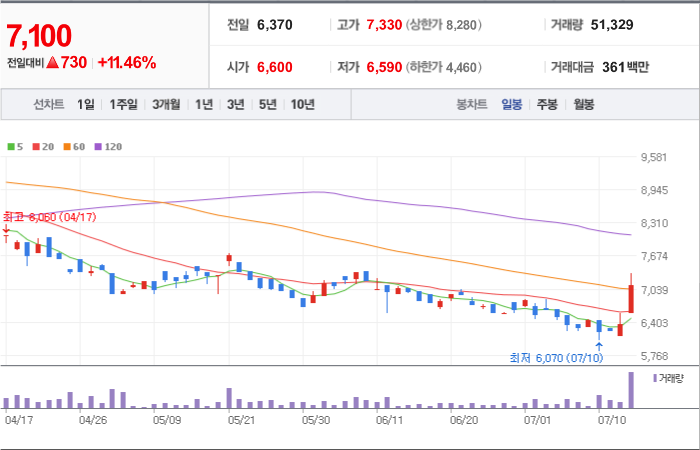 현재가: 7,100, 어제대비:+상승