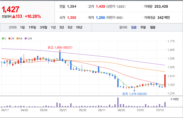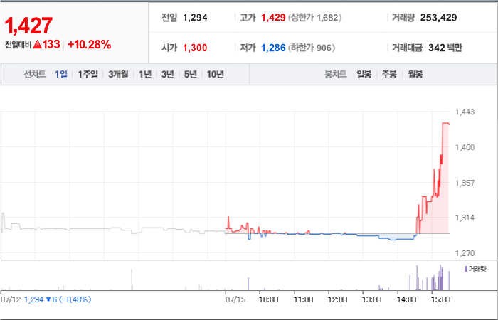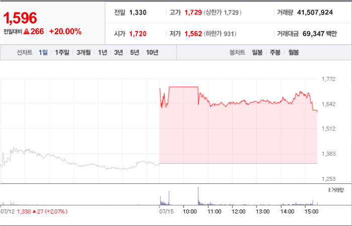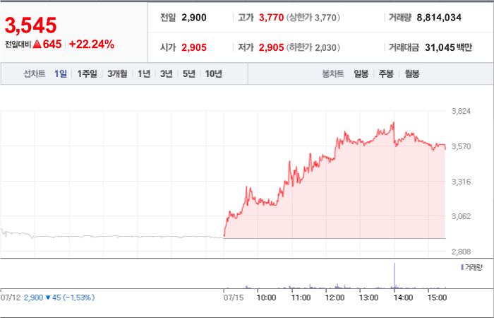 645시총: 1,400억원, 거래량:8,814,034, 거래대금:31,045백만