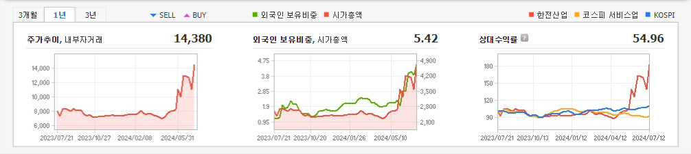 8. 한전산업 등락률: +10.64%