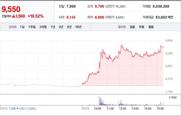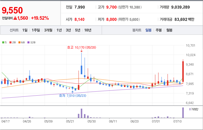 현재가: 9,550, 어제대비:+상승