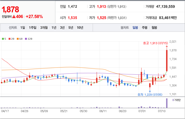 현재가: 1,878, 어제대비:+상승
