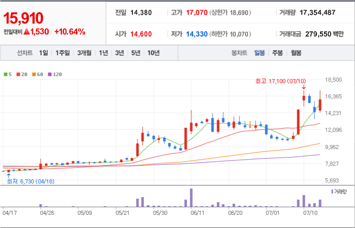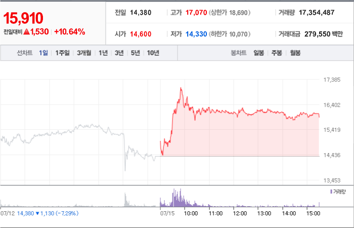 현재가: 15,910, 어제대비:+상승