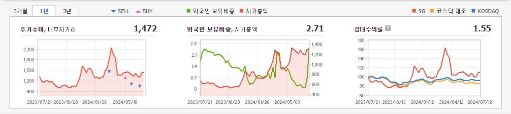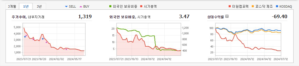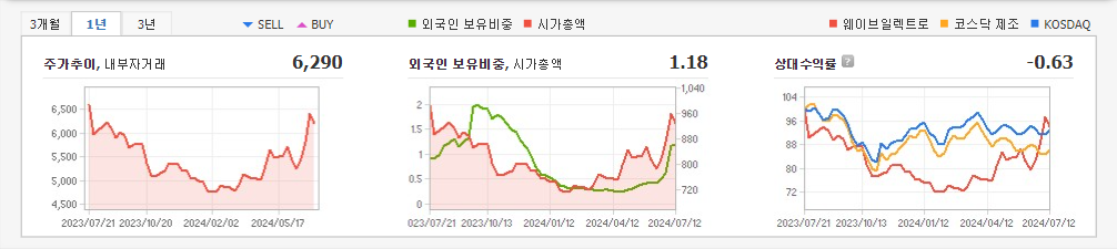 2024년 3월 전년동기 대비 별도기준 매출액은 1.2% 감소, 영업손실은 154.2% 증가, 당기순이익 적자전환. 최근 지속적인 연구개발 투자 및 인증을 통한 제품 경쟁력 강화로 수익성 개선 기대감으로 장기 바닥권에서 주가가 상승전환을 시도함. 내년 하반기부터는 유럽 및 기타지역에서 제품을 출시할 것으로 추정되며, 2025년 상반기에는 북미 시장 출시가 기대됨.\