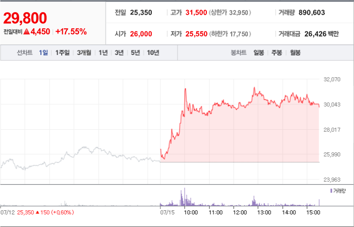 현재가: 29,800, 어제대비:+상승