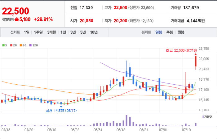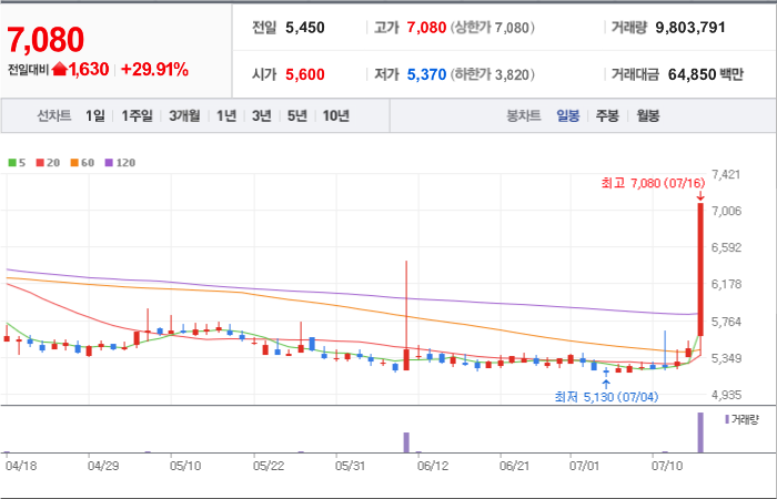 5,180시총: 976억원, 거래량:187,679, 거래대금:4,144백만
