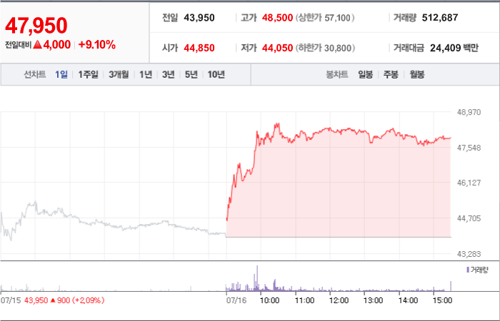 94시총: 360억원, 거래량:10,398,291, 거래대금:5,297백만