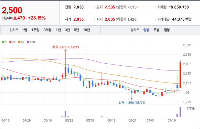 470시총: 689억원, 거래량:18,850,158, 거래대금:44,373백만
