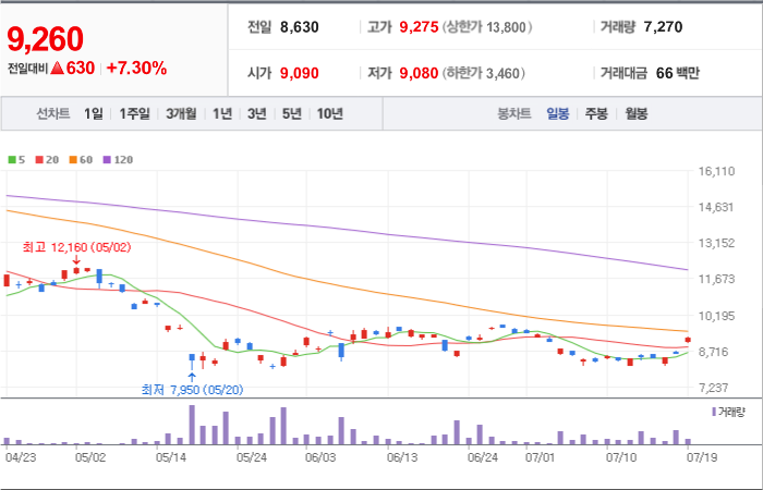 630시총: 46억원, 거래량:7,270, 거래대금:66백만