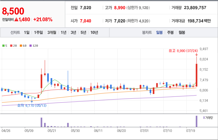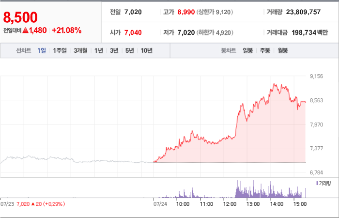 현재가: 8,500, 어제대비:+상승