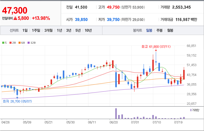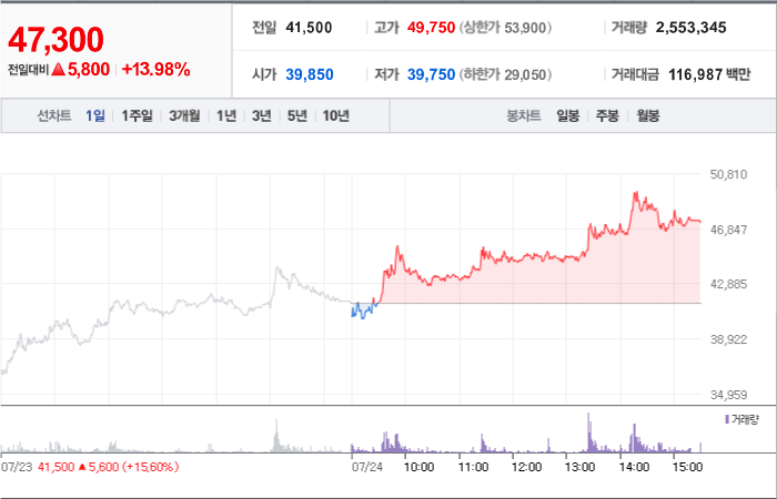 현재가: 47,300, 어제대비:+상승
