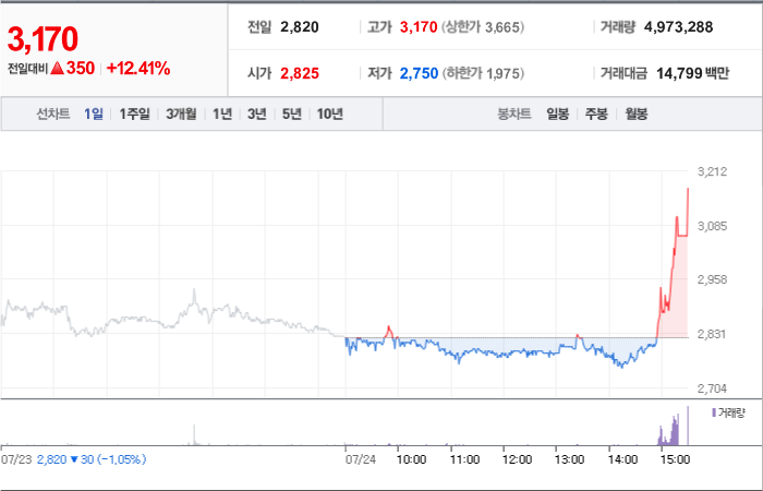 현재가: 3,170, 어제대비:+상승