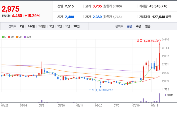 현재가: 2,975, 어제대비:+상승
