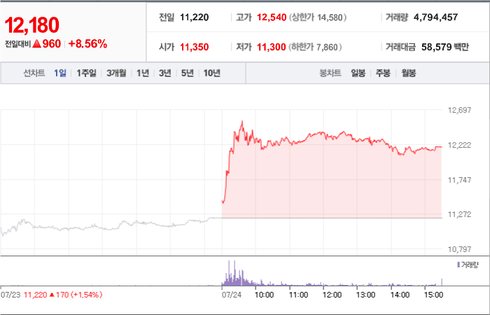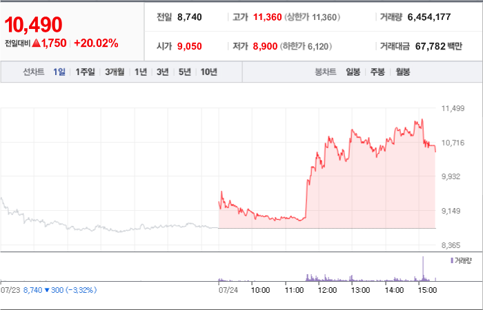 10,700시총: 1조 4,924억원, 거래량:195,539, 거래대금:24,883백만