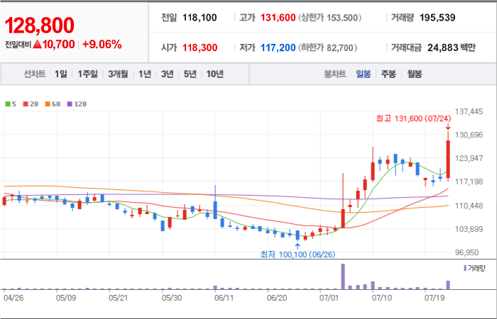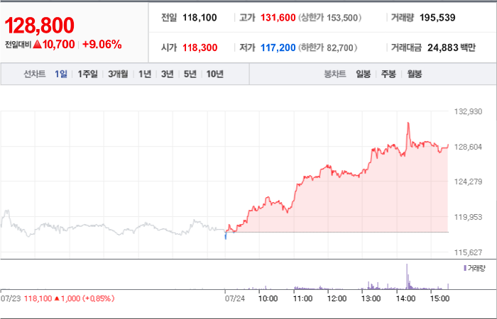 현재가: 128,800, 어제대비:+상승