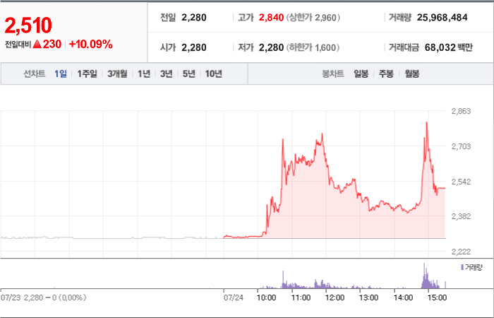 230시총: 3,607억원, 거래량:25,968,484, 거래대금:68,032백만