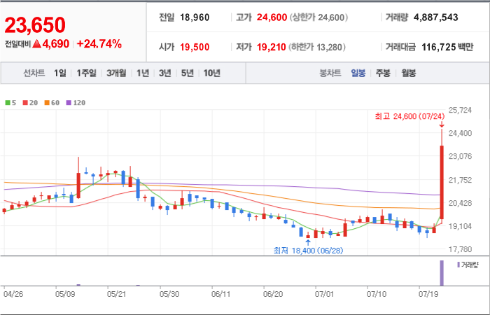 현재가: 23,650, 어제대비:+상승