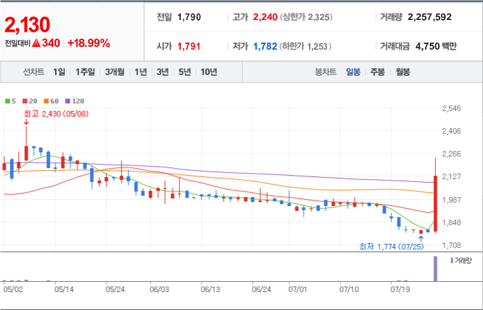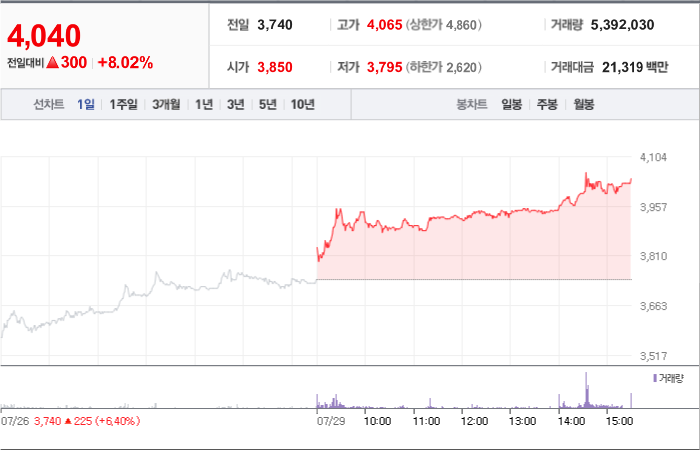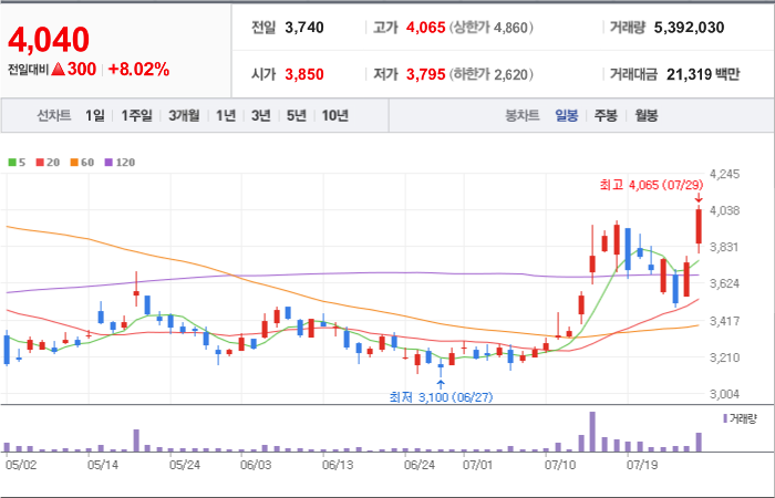 5,150시총: 4조 710억원, 거래량:10,941,796, 거래대금:480,812백만