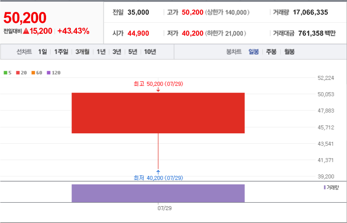 15,200시총: 1조 5,283억원, 거래량:17,066,335, 거래대금:761,358백만
