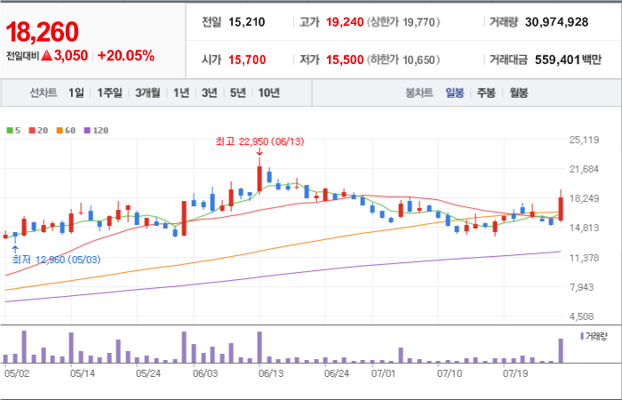 24,000시총: 16조 3,282억원, 거래량:801,237, 거래대금:250,543백만