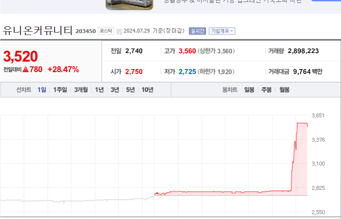 2,820시총: 2,078억원, 거래량:9,354,870, 거래대금:109,813백만