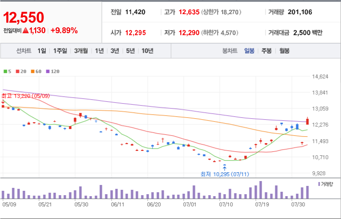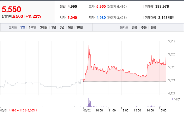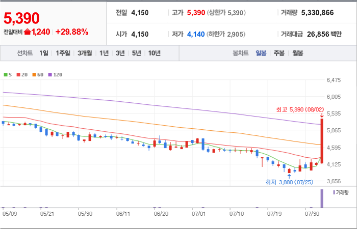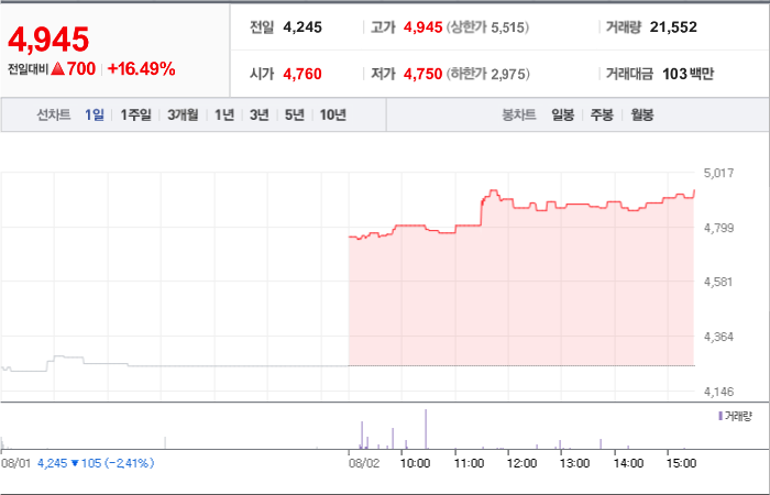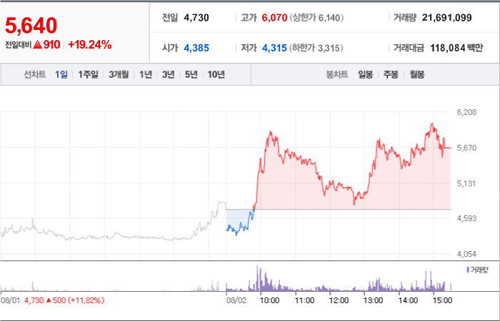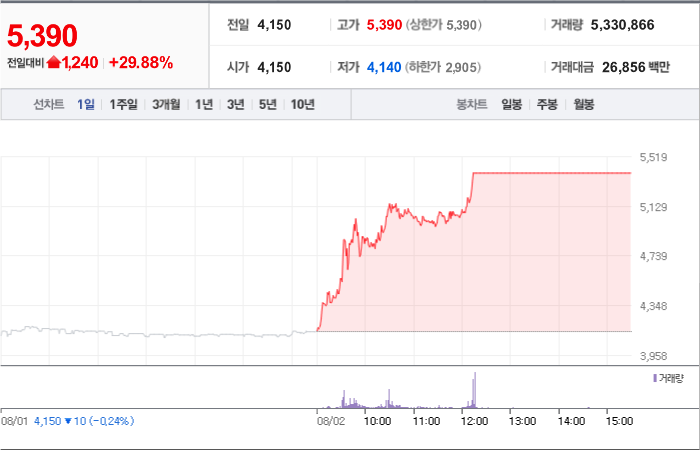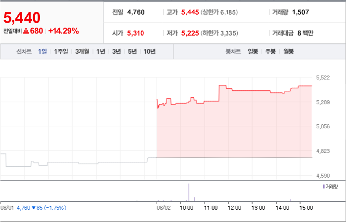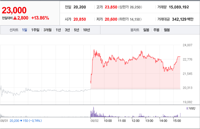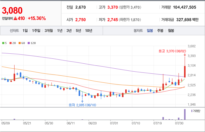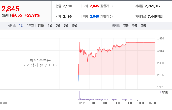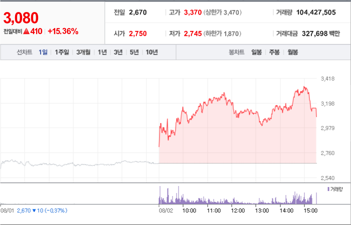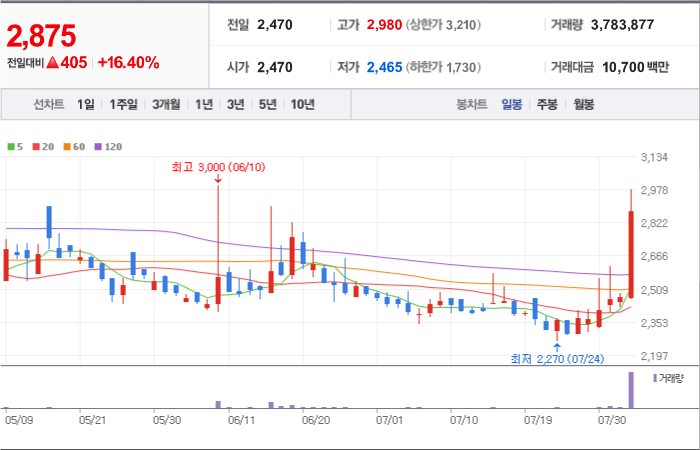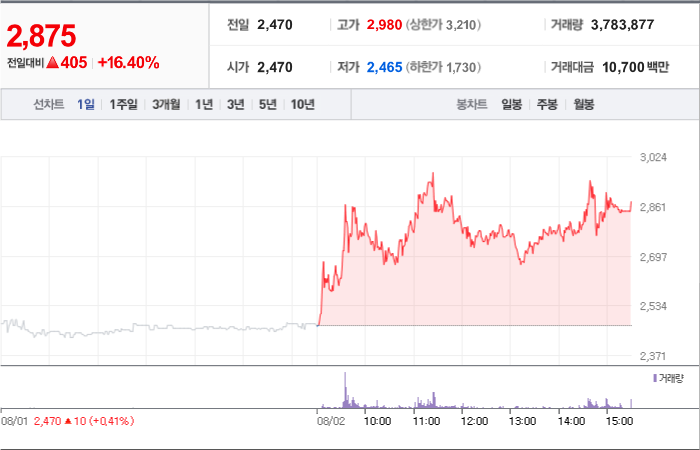2,800시총: 2,920억원, 거래량:15,089,192, 거래대금:342,129백만