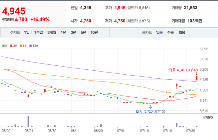 755시총: 329억원, 거래량:91,660, 거래대금:489백만